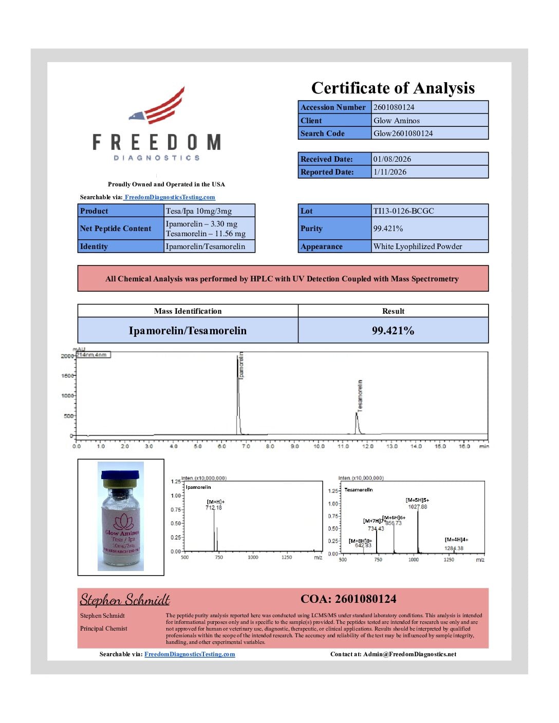 Mass & purity verified